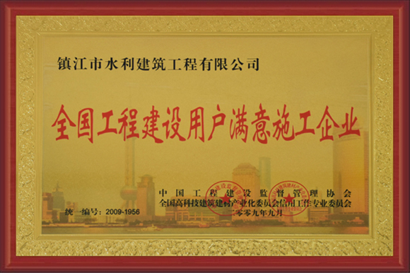 公司被評(píng)為重合同守信用企業(yè)、江蘇省水利安全生產(chǎn)標(biāo)準(zhǔn)化二級(jí)單位、AAA級(jí)資信企業(yè)、誠(chéng)信示范企業(yè)、全國(guó)工程建設(shè)用戶滿意施工企業(yè)。